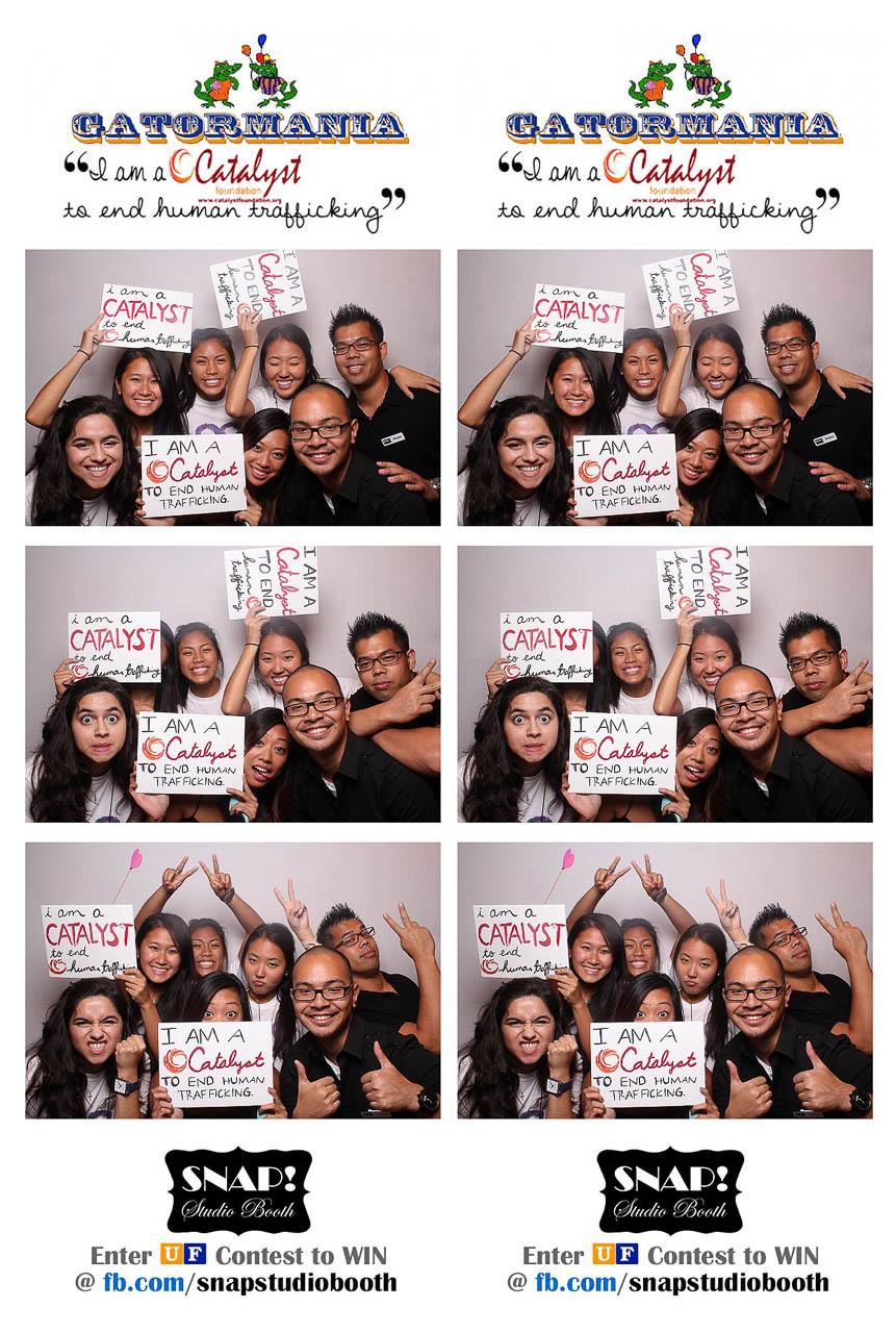 Gator Mania, a night filled with fun, food, games and live performances. We teamed up with Gators Against Human Trafficking to raise awareness about Human Trafficking. For every photo taken with the sign saying, “I am a Catalyst against Human Trafficking” a dollar was donated towards the Catalyst Foundation. Our photo booth was rocking non-stop for 2.5 straight hours and we’re pleased to say we rose quite a bit of money. We also created a special contest for all the UF organizations and went around signing groups up. If we missed your club or your club wasn’t there; you can still sign up until August 1st!