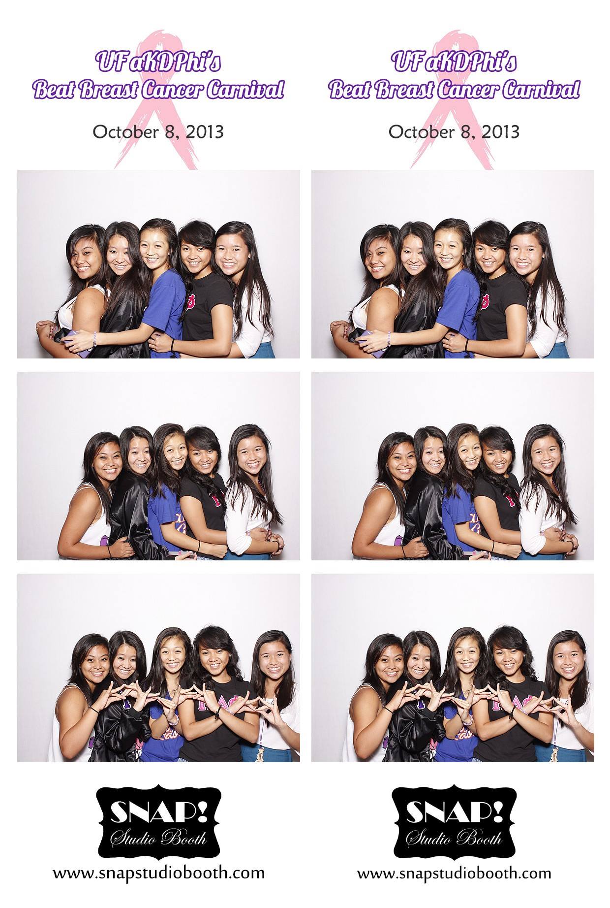 Raising awareness about Breast Cancer the aKDPhi way with a fun carnival! Pizza, chicken tenders, desserts, and snow cones were available in exchange for tickets. Our photo booth was open and free photo opps and people sure did have fun! Airbrush tattoos were only 1 ticket and they were extremely cute and lasted for 1 week! The sisters were also selling Breast Cancer T-shirts for 10 dollars which we snagged a few. It was a fun event at the Reitz Breezeway at UF on Tuesday October 8, 2013.